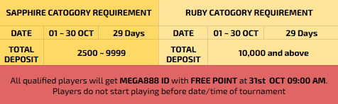- Tournament Rules and regulations! Player have to achieve 3 golden rules during tournament! Refer to the table below: